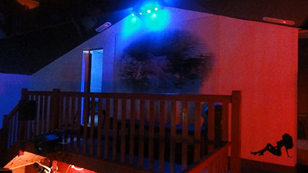 This room is completely 'black' and has a powerful UV light that you can control, viewing window, lockable door and a huge comfortable bed